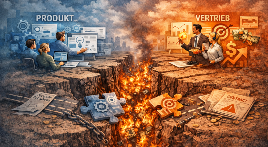 Ohne klare Antworten optimiert jede Funktion ihr eigenes System. Produkt schützt die Architektur und der Vertrieb schützt den Umsatz. Beide verlieren gemeinsam an Wirkung.